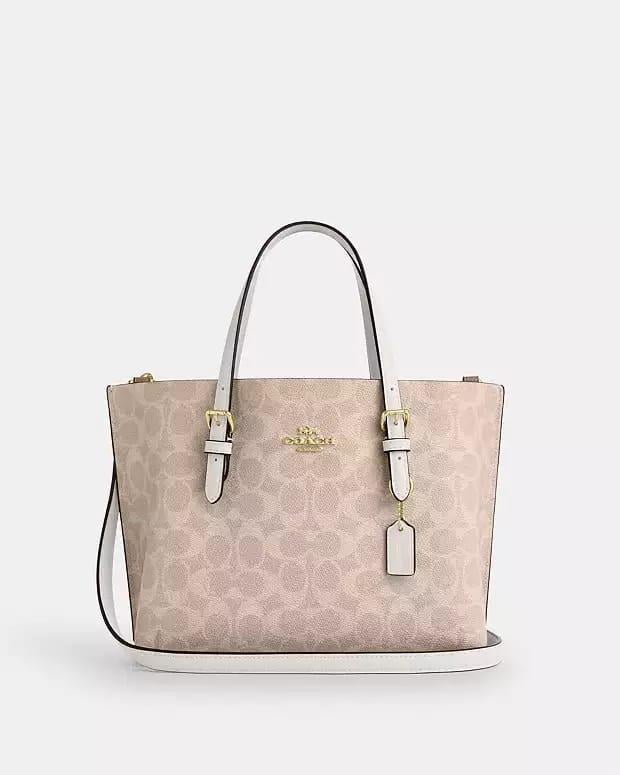 Coach Mollie Tote Çanta, yüksek kaliteli deri ve imza kaplamalı kanvas malzemeden üretilmiştir. Geniş iç hacmi ve çoklu bölmeleri sayesinde günlük eşyalarınızı düzenli bir şekilde taşımanıza olanak tanır. Orta kısmında fermuarlı bölme ve yanlarda açık bölmeler bulunur, böylece eşyalarınıza kolayca erişebilirsiniz. Çıkarılabilir ve ayarlanabilir omuz askısı sayesinde omuzda veya çapraz olarak rahatça taşınabilir. Orijinal Coach Mollie Tote Çanta’yı en uygun fiyatlarla Forum Amerika’dan sipariş edin ve tarzınıza zarafet katın!